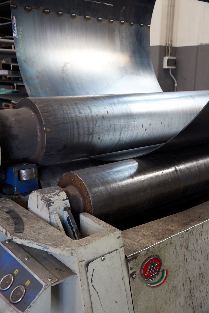 Eseguiamo la calandratura delle lamiere con calandre a quattro rulli ad assi paralleli, progettate per ottenere forme cilindriche perfette e ripetibili.