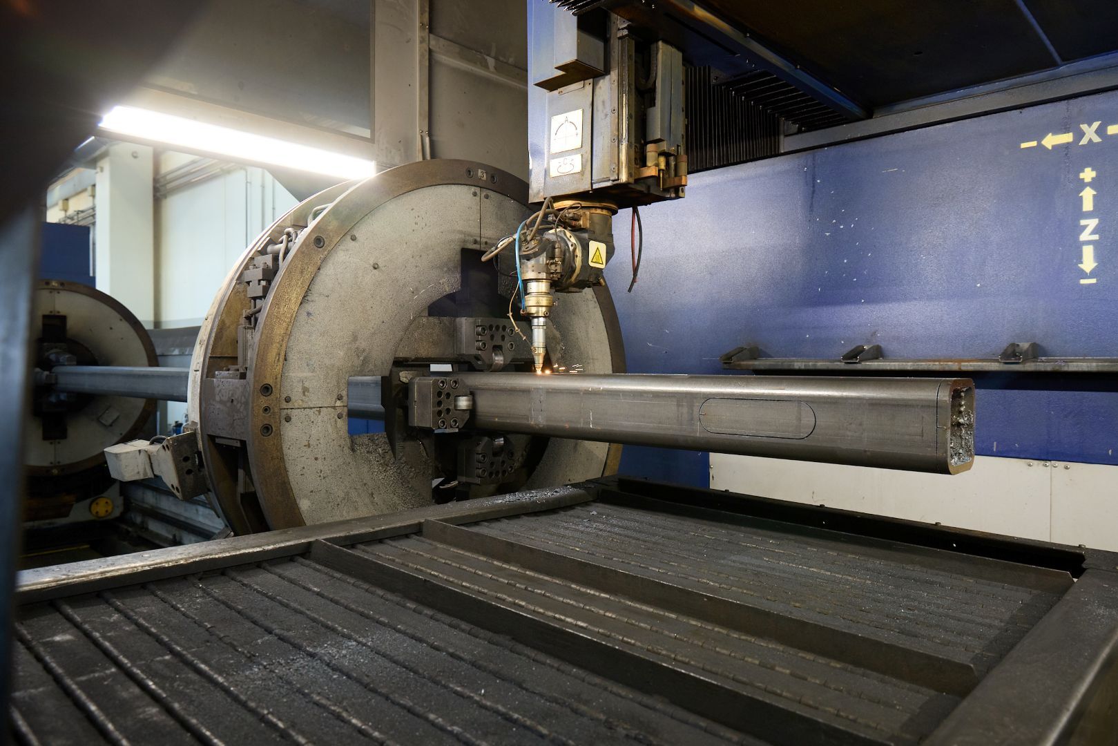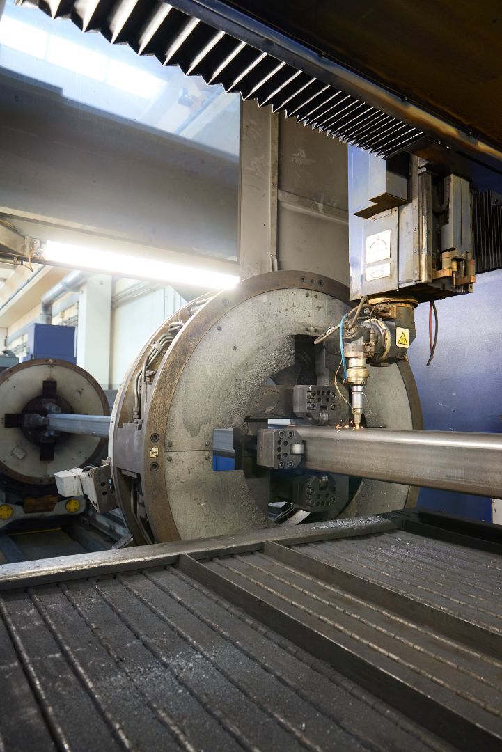 Per applicazioni più avanzate, disponiamo di un impianto 3D con campo di lavoro fino a 14000 mm di lunghezza, ideale per sezioni tonde, quadre e rettangolari. Con 4000 W CO₂, 4 mandrini autocentranti e un sistema con 32 assi interpolati, l’impianto gestisce qualsiasi forma o sezione senza necessità di cambio attrezzatura.